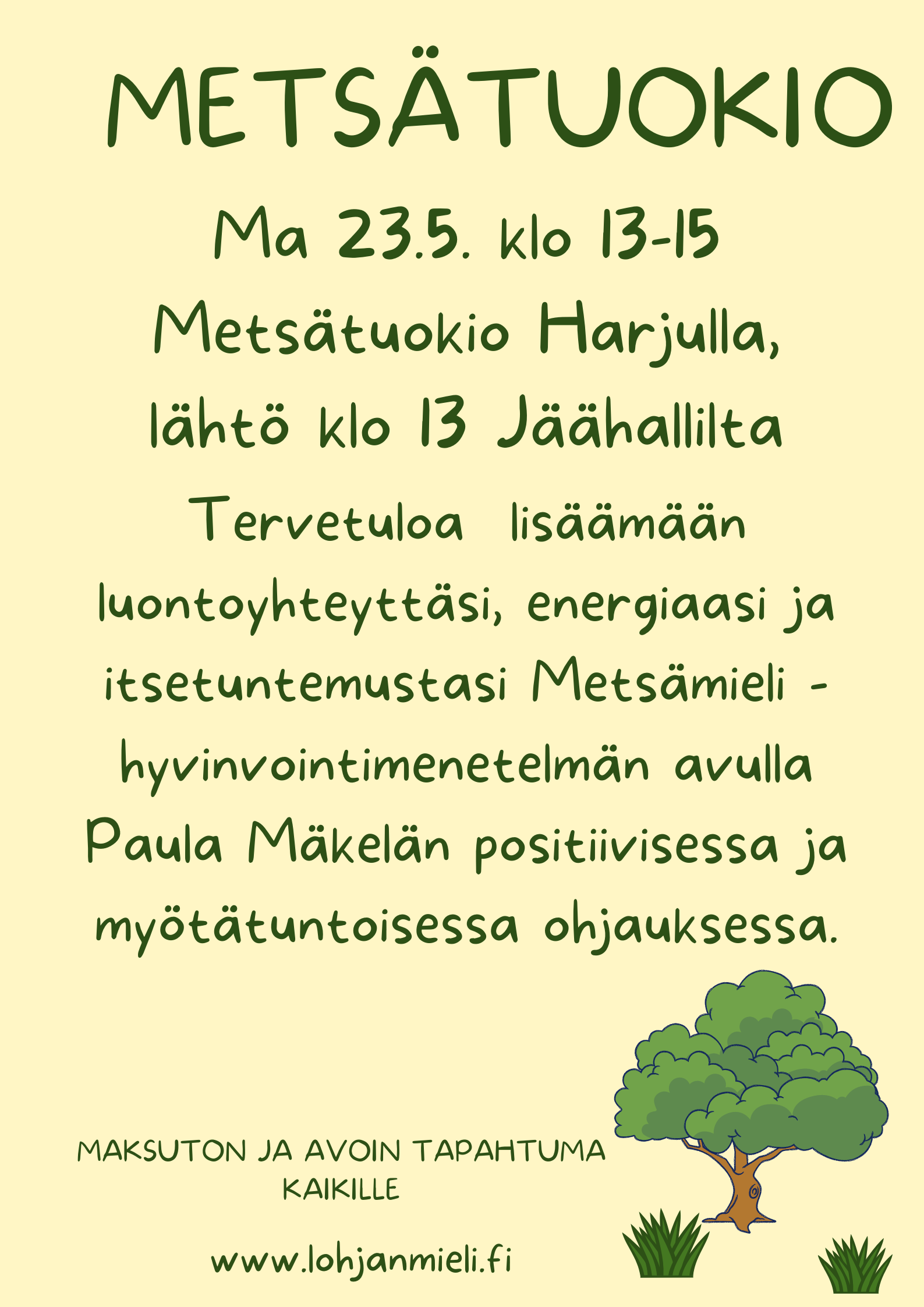 Ma 23.5. klo 13-15 Metsätuokio Harjulla , linkki fb tapahtumaan https://fb.me/e/3wBVGXS7t